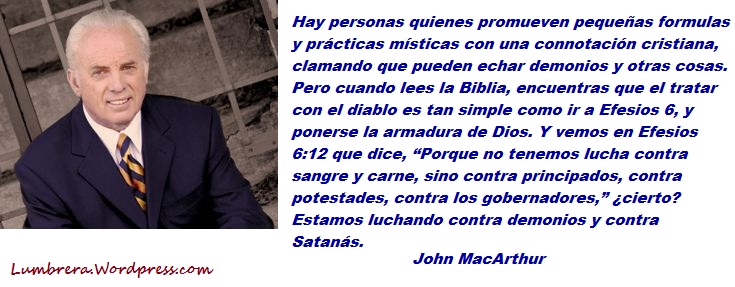 Hay personas quienes promueven pequeñas formulas y prácticas místicas con una connotación cristiana, clamando que pueden echar demonios y otras cosas. Pero cuando lees la Biblia, encuentras que el tratar con el diablo es tan simple como ir a Efesios 6, y ponerse la armadura de Dios. Y vemos en Efesios 6:12 que dice, “Porque no tenemos lucha contra sangre y carne, sino contra principados, contra potestades, contra los gobernadores,” ¿cierto? Estamos luchando contra demonios y contra Satanás.