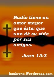 Nadie tiene un amor mayor que éste: que uno dé su vida por sus amigos. Juan 15:3