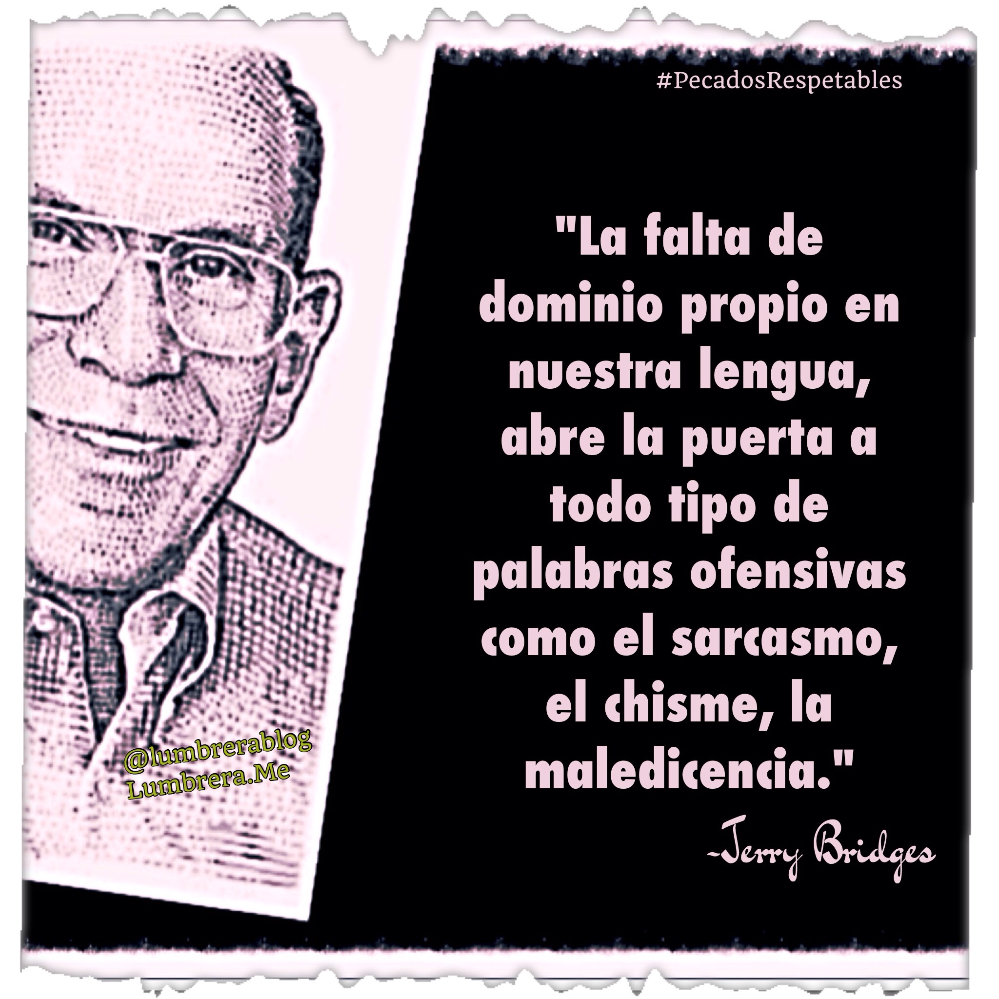 “La falta de dominio propio en nuestra lengua, abre la puerta a todo tipo de palabras ofensivas como el sarcasmo, el chisme, la maledicencia.” ~Jerry Bridges