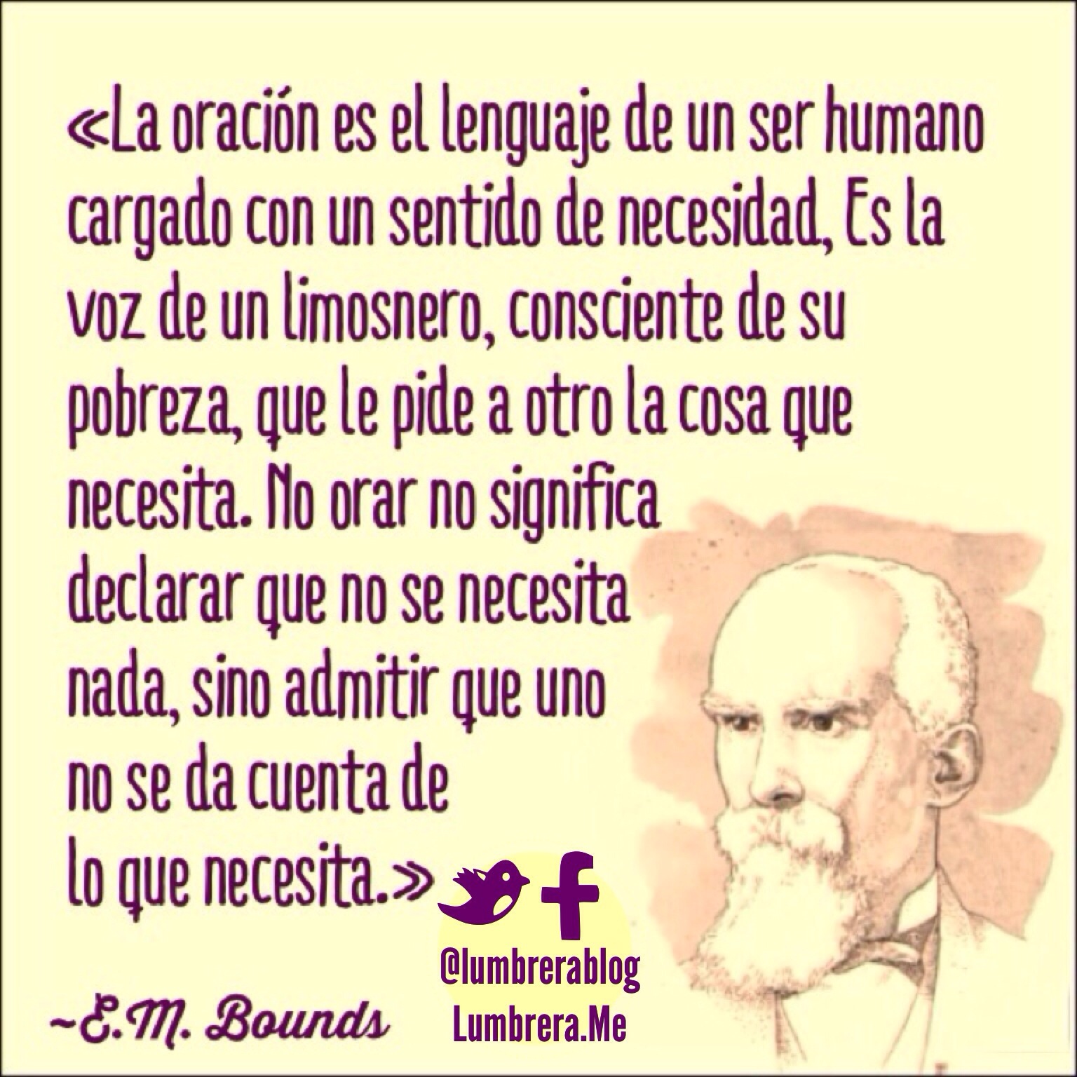 “La oración es el lenguaje de un ser humano cargado con un sentido de necesidad, Es la voz de un limosnero, consciente de su pobreza, que le pide a otro la cosa que necesita. No orar no significa declarar que no se necesita nada, sino admitir que uno no se da cuenta de lo que necesita”.