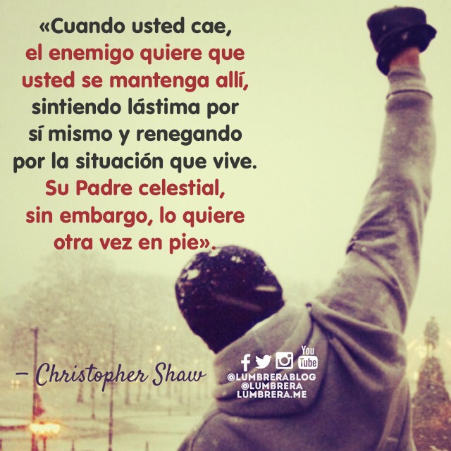 Cuando usted cae, el enemigo quiere que usted se mantenga allí, sintiendo lástima por sí mismo y renegando por la situación que vive. Su Padre celestial, sin embargo, lo quiere otra vez en pie. Si hay cosas que confesar, confiéselas. Si hay personas que enfrentar, enfréntelas. Si hay situaciones que corregir, corríjalas. Pero no pierda mucho tiempo lamentándose por los acontecimientos que le han tocado vivir.