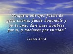 «Porque a mis ojos eres de gran estima, eres honorable y yo te he amado; daré, pues, hombres a cambio de ti y naciones a cambio de tu vida». — Isaías 43.4