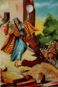«Cuando volvió Jefté a Mizpa, a su casa, su hija salió a recibirlo con panderos y danzas. Ella era sola, su hija única; fuera de ella no tenía hijo ni hija. Cuando él la vio, rasgó sus vestidos, diciendo: «¡Ay, hija mía!, en verdad que me has afligido, y tú misma has venido a ser causa de mi dolor, porque le he dado mi palabra a Jehová y no podré retractarme». Jueces 11.34–35