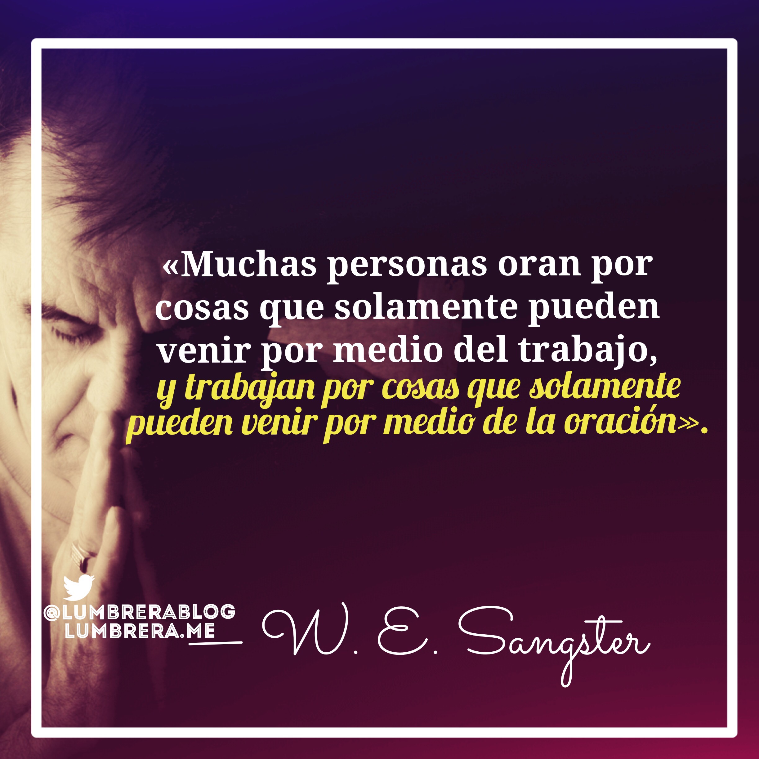 Un santo de la iglesia, W. E. Sangster, resume lo que hoy hemos observado con esta frase: «Muchas personas oran por cosas que solamente pueden venir por medio del trabajo, y trabajan por cosas que solamente pueden venir por medio de la oración». Reflexione por un momento en su propia vida de oración; ¿dónde están centradas sus peticiones? ¿Qué cargas eleva con frecuencia al Señor? ¿Cuáles de ellas requieren mayor esfuerzo de su parte? ¿Cuáles son las cosas que solamente el Señor puede hacer?