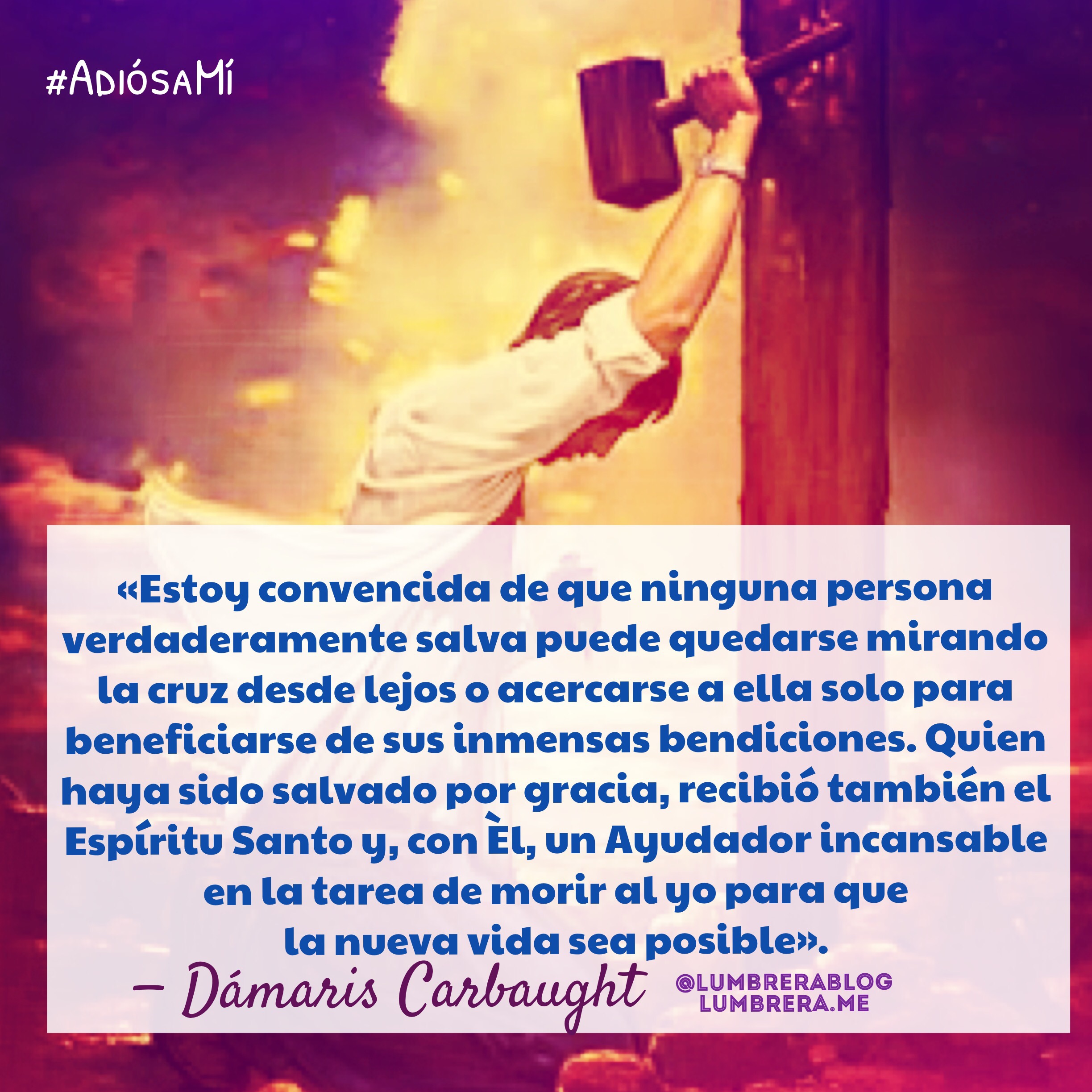 ¿Dónde te encuentras en tu caminar cristiano? ¿Te has quedado al pie de la cruz, lavado por la sangre del Cordero, rescatado y reconciliado con Dios? ¿Has entendido que ahí no termina el mensaje del evangelio? ¿Probaste en carne propia los clavos de la negación de ti mismo, de tu propia crucifixión? He oído decir que solamente quienes quieren convertirse en discípulos de Jesús -aun en nuestra época- aceptan este llamado más exigente. “Los demas son salvos, pero no son discipulos”, enseñan por ahí. Estoy convencida de que ninguna persona verdaderamente salva puede quedarse mirando la cruz desde lejos o acercarse a ella solo para beneficiarse de sus inmensas bendiciones. Quien haya sido salvado por gracia, recibió también el Espíritu Santo y, con Èl, un Ayudador incansable en la tarea de morir al yo para que la nueva vida sea posible. No hay “niveles de llamado” en el cristianismo: “yo solamente acepté un poquito del mensaje, la primera parte”. La invitación de Cristo a creer en Él implica todo lo demás. Estamos o no estamos en la fe cristiana. Somos o no somos. Es cierto que no alcanzaremos la perfección en esta tierra, pero también es cierto que no hay estancamientos perpetuos. La invitacion es para todos. ¿Estás en la cruz?