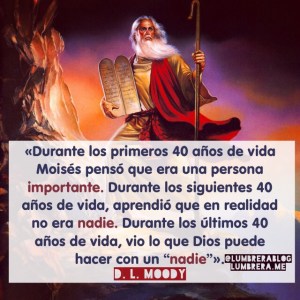 «Durante los primeros 40 años de vida, él pensó que era una persona importante. Durante los siguientes 40 años de vida, aprendió que en realidad no era nadie. Durante los últimos 40 años de vida, vio lo que Dios puede hacer con un “nadie”».